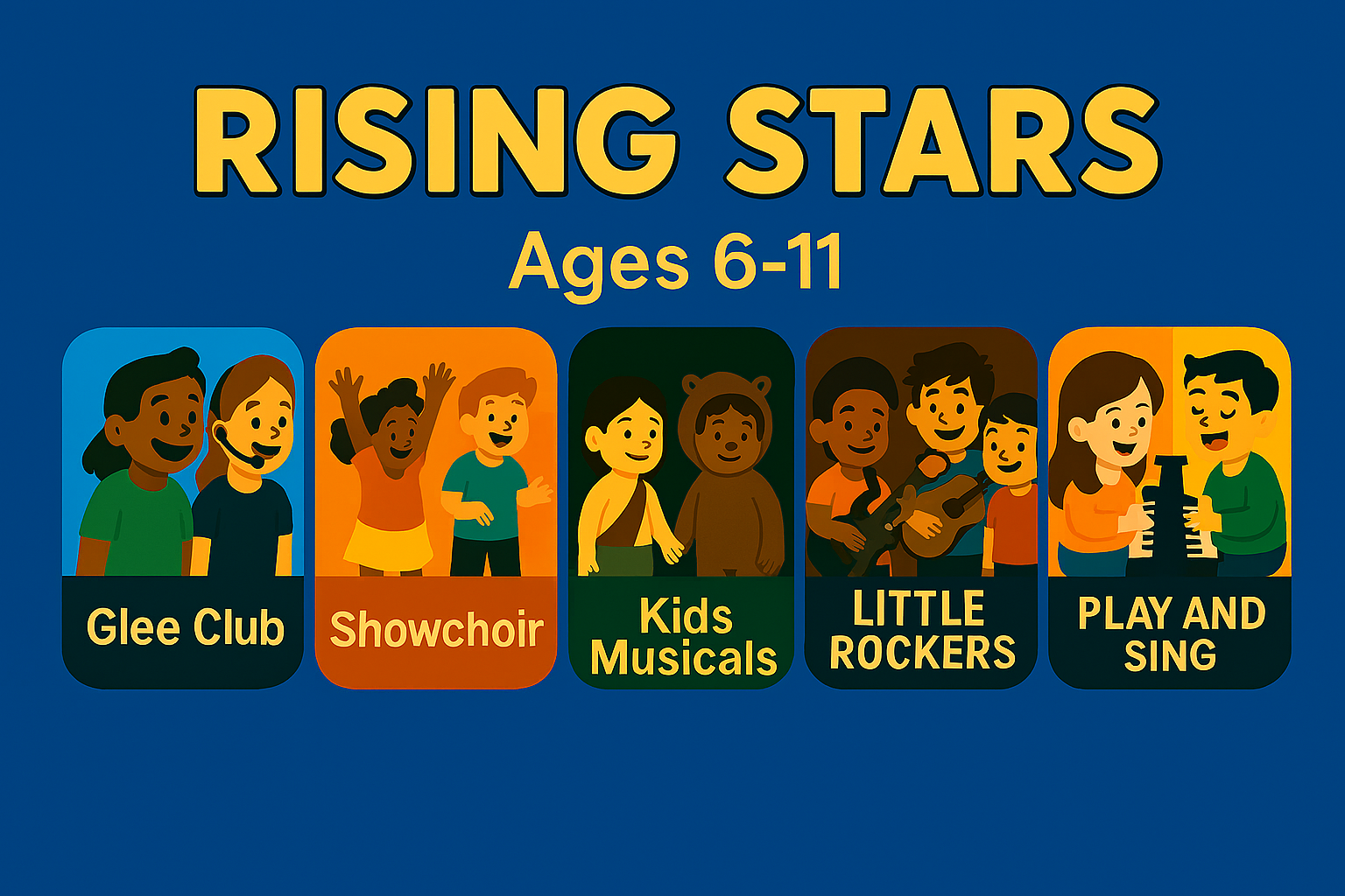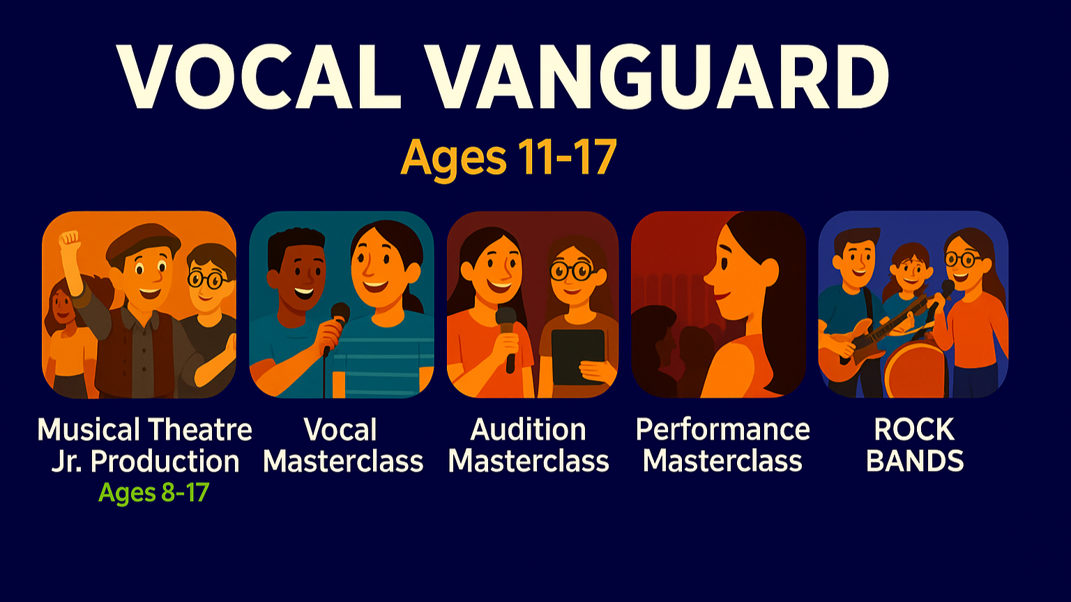 1.The Rising Stars (ages 6-11), and 2. The Vocal Vanguard (ages 11-17)