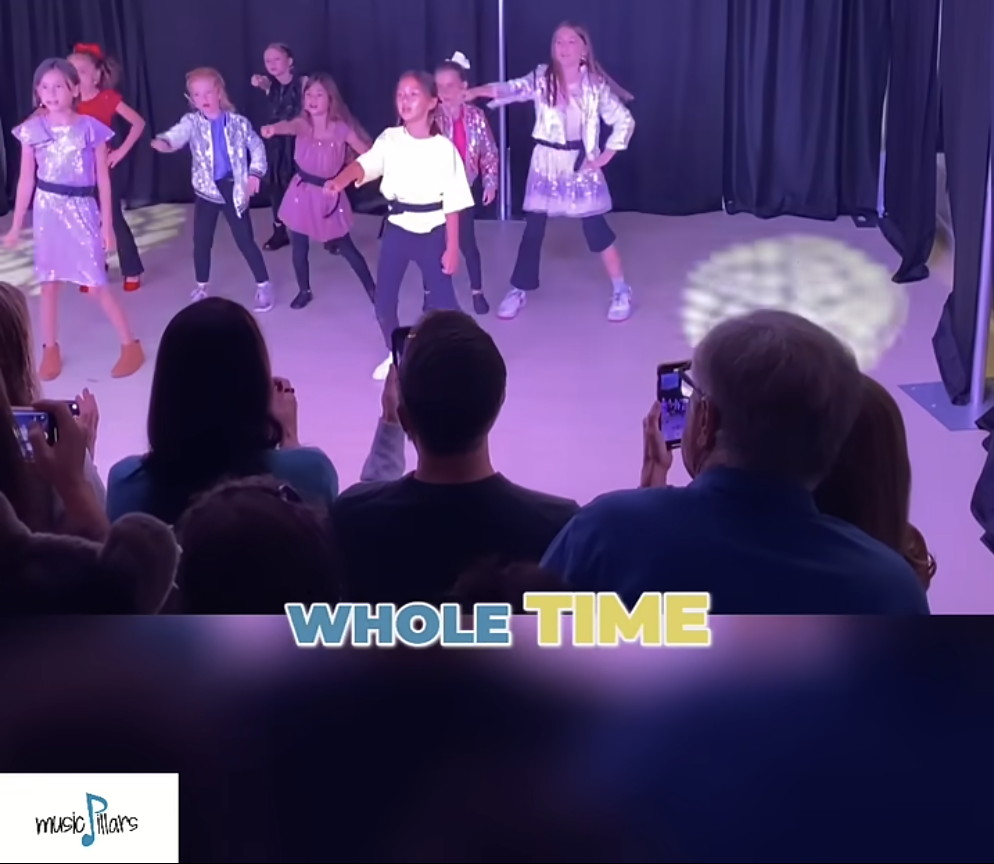 Group singing and choreography to fun, popular songs